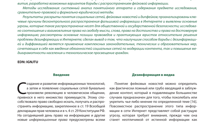 В условиях быстрого развития новых информационных технологий и социальных сетей, проблема дезинформации становится все более актуальной.