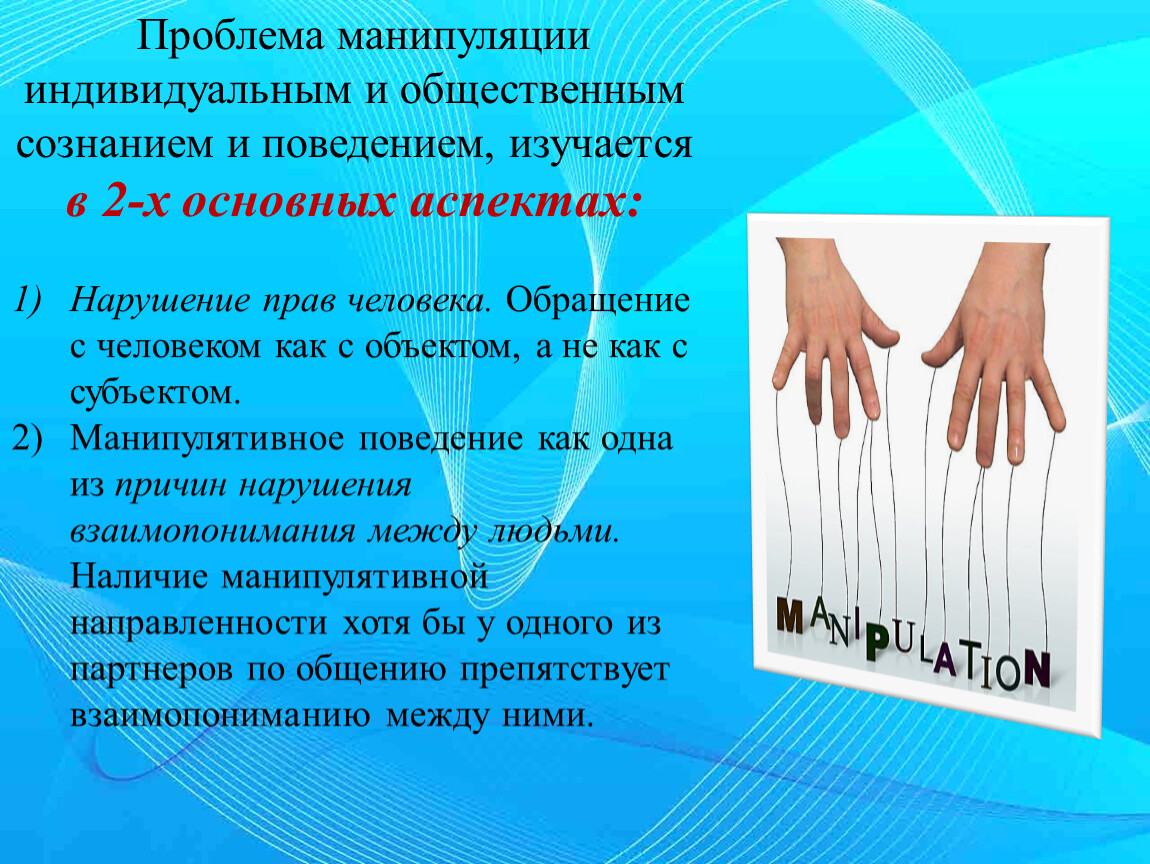 - Манипуляции и психологическое воздействие